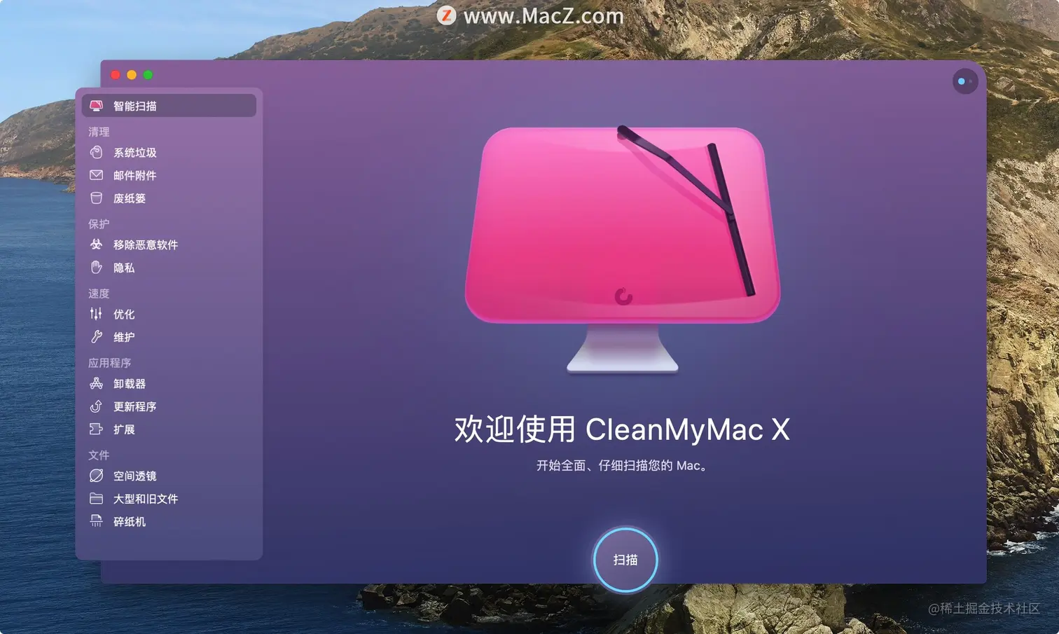 为了维护mac系统健康,优化系统功能,我们需要定期给电脑进行清理。今天macz小编给大家推荐一款智能清理卸载软件——CleanMyMac X中文版,这款软件外观简洁大气,操作方便易上手,功能齐全,能够解决常用问题。