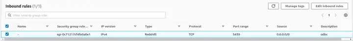 - 将安全组的 inbound 规则设置如下,开放5439端口给外部。