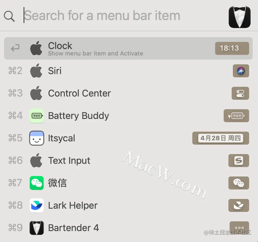 Bartender 4 作为 Mac 菜单栏图标整理工具,不仅能帮你整理、收纳菜单栏图标,还有很多实用功能——图标自动展开/隐藏、拖拽管理、快速搜索等,与系统高度集成,完善你的 macOS 菜单栏使用体验,让菜单栏变得整洁、美观的同时,也帮你提高效率。