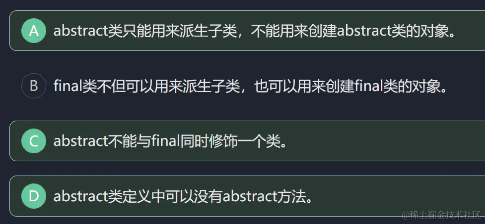 3.抽象类中可以包含非抽象的普通方法,接口中的所有方法必须都是抽象的,不能有非抽象的普通方法。