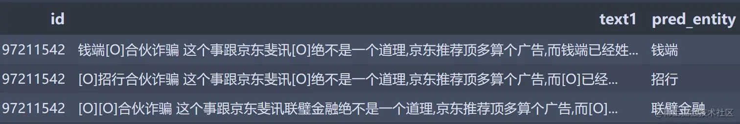 | Format2:单输入,title+text, 用[E]标记待预测实体,伴随实体用[O]替换 | 93.5% | 94.6% | 93.9% |