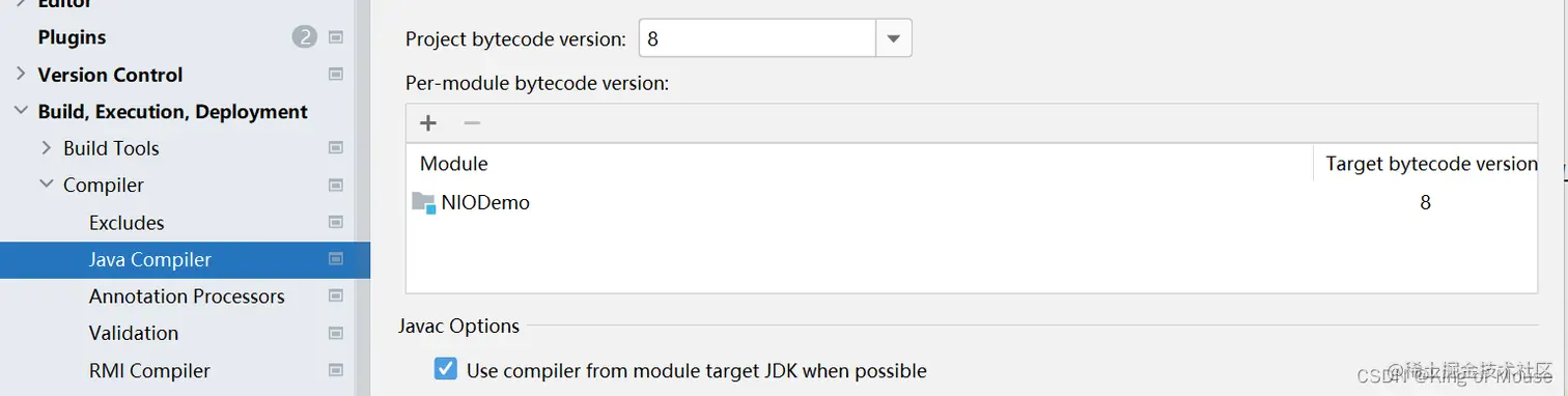 2.点击 File -> settings -> 图片中的选项 , 将 Target bytecode version 改成 8,project bytecode version 改成 8