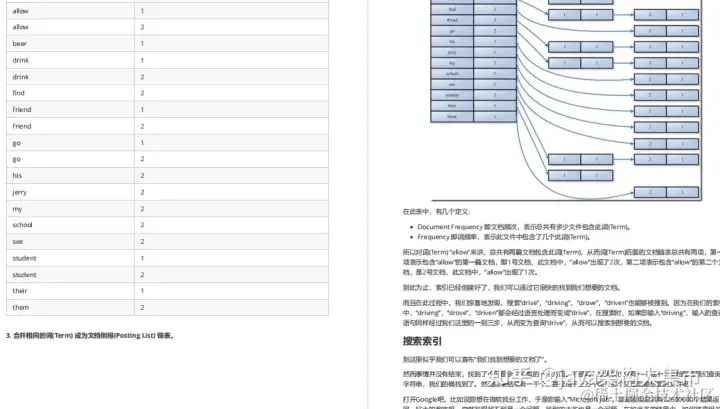 合并相同的词(Term) 成为文档倒排(Posting List) 链表。