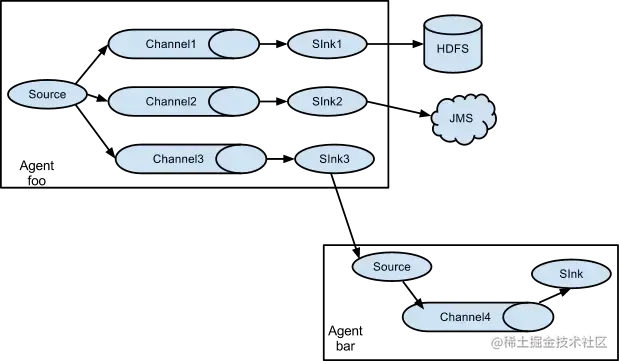 - Channel:agent内部的数据传输通道,用于从source将数据传递到sink;