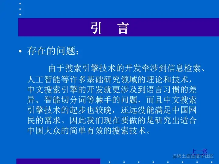 - 索引数据量大,以致不可能有某个数据库能包括整个Internet的索引,目前最大的搜索引擎,其中的索引也只不过覆盖了Internet的一小部分;