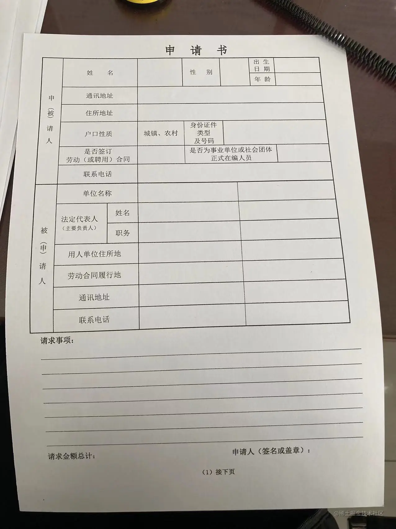 请求事项需要按照,提示写,格式不正确会,工作人员会查看申请书后让做出改正,在对应的填表区有相关的说明的,可以照着格式写下来,不要慌。签名不用写,会让复印三份,回来之后再签。