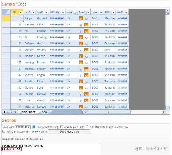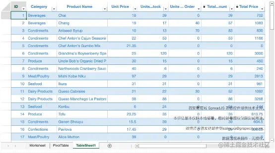 集算表 (Table Sheet)是一个具备高性能渲染、数据绑定功能、公式计算能力的数据表格,通过全新构建的关系型数据管理器结合结构化公式,在高性能表格的基础上提供排序、筛选、样式、行列冻结、自动更新、单元格更新等功能。