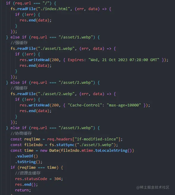html会读取图片资源,同样需要设置http请求处理,根据返回的不同请求头字段,为图片资源设置不同的缓存机制