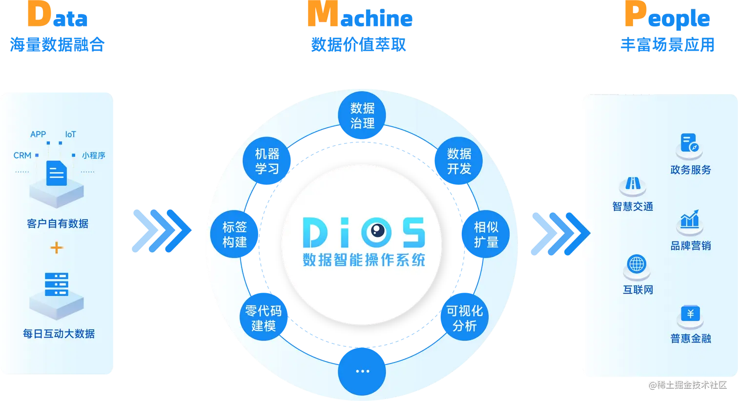 2022年,个推还首提DiOS数据智能操作系统,面向行业客户,输出数据治理能力,帮助企业更加方便和快捷地管理多源数据,萃取数据价值,升华业务效率。DiOS不仅为行业发展提速,还有效赋能社会公共治理,助力改善交通、提升政务服务效率、更好地服务民生。
