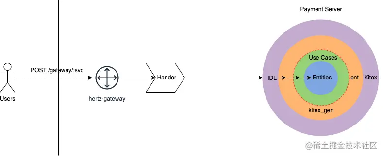 - 对外暴露的是 HTTP 接口,可以用 Hertz 来做网关入口,根据 HTTP 请求使用 Kitex 泛化调用对请求分发到具体的 RPC 服务;
