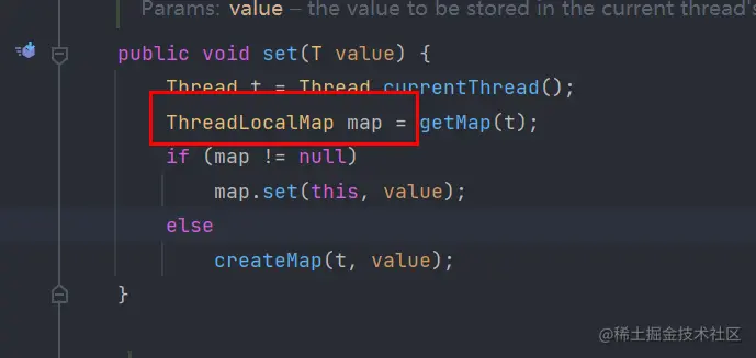 在 set,get,initialValue 和 remove 方法中都会获取到当前线程,然后通过当前线程获取到 ThreadLocalMap,如果 ThreadLocalMap 为 null,则会创建一个 ThreadLocalMap,并给到当前线程