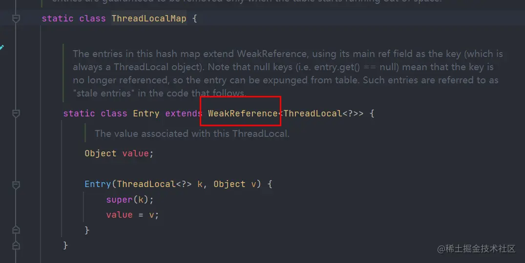 Entry 中的 key 使用了弱引用的方式,这样做是为了降低内存泄漏发生的概率,但不能完全避免内存泄漏。