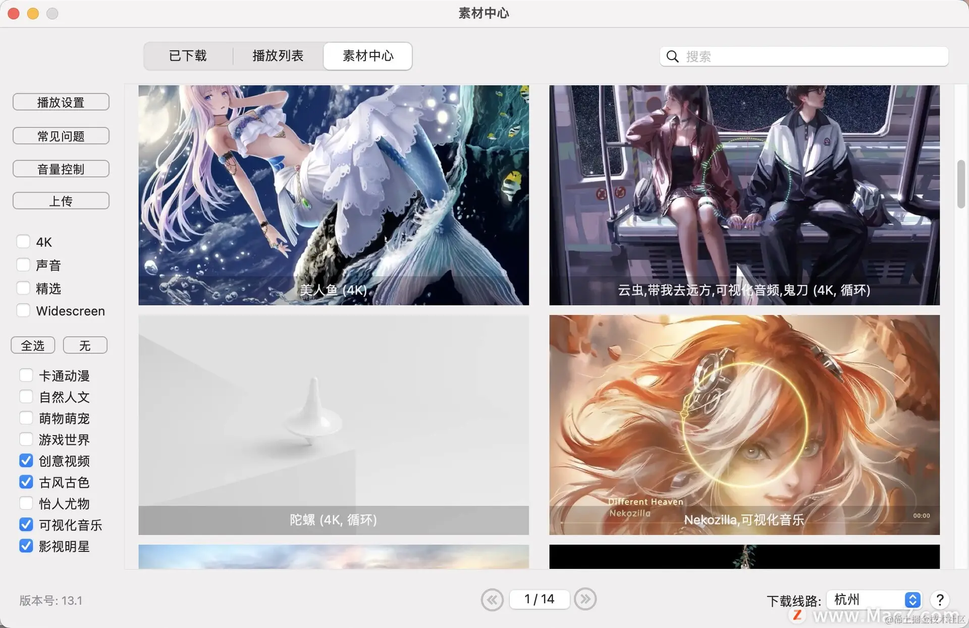 Dynamic Wallpaper mac版是一款非常优秀的视频动态壁纸软件!Dynamic WallpaperMac版视频素材丰富,包含:卡通动漫、自然人文、萌宠萌物、游戏世界、创意视频、古风古色等各种视频动态壁纸风格,总有一款适合你!
