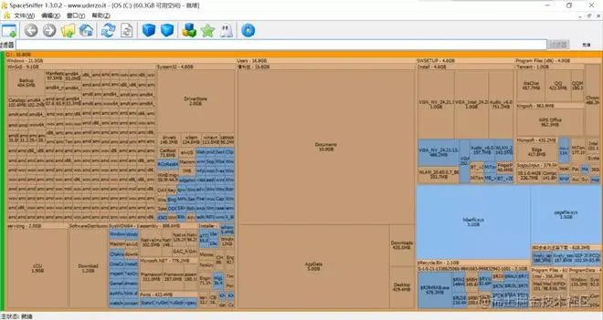 电脑用久了,经常会出现卡顿、死机等情况,这都是因为随着系统使用的时间久了,磁盘被各种各样的东西给塞满了导致的。SpaceSniffer 可以很直观的以区块,数字和颜色来显示硬盘上文件夹,文件大小。