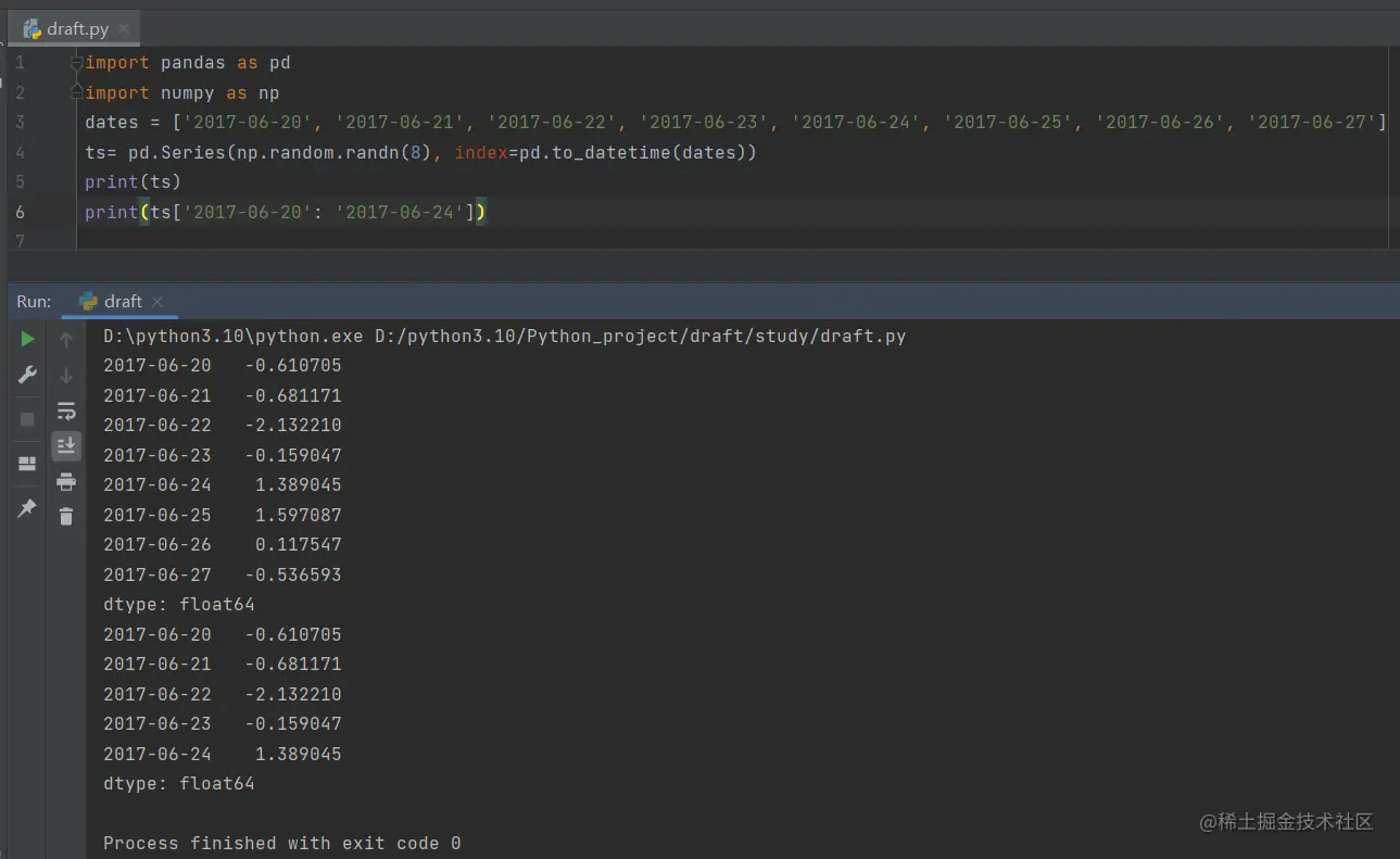 - Pandas提供了一组标准的时间序列处理工具和数据算法,如进行切片/切块、聚合、对定期/不定期的时间序列进行重采样等。