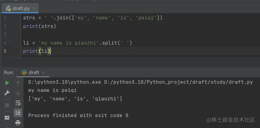 strs = ' '.join(['my', 'name', 'is', 'peiqi'])