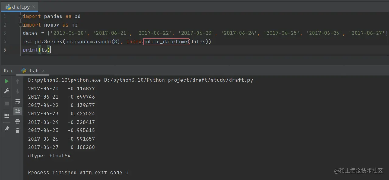 - Pandas最基本的时间序列类型就是以时间戳(通常以Python字符串或datetime对象表示)为索引的Series