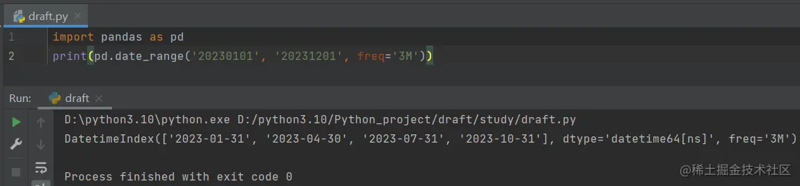 print(pd.date_range('20230101', '20231201', freq='3M'))