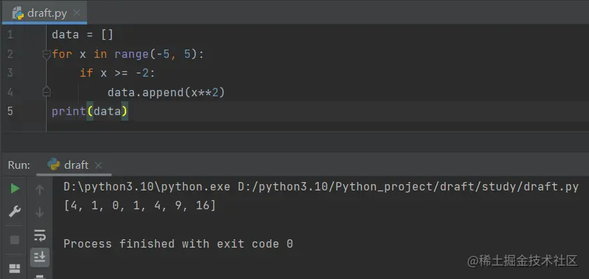 例:创建了一个空列表,然后通过for循环来给列表添加新元素,并且需要通过if语句保证x在一定的数值范围