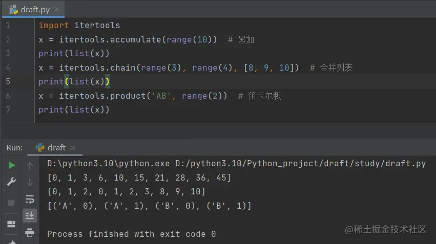 itertools模块中 的函数大多是返回各种迭代器对象,其中很多函数的作用需要我们平时要写很多代码才能达到,然而在运行效率上反而更低。
