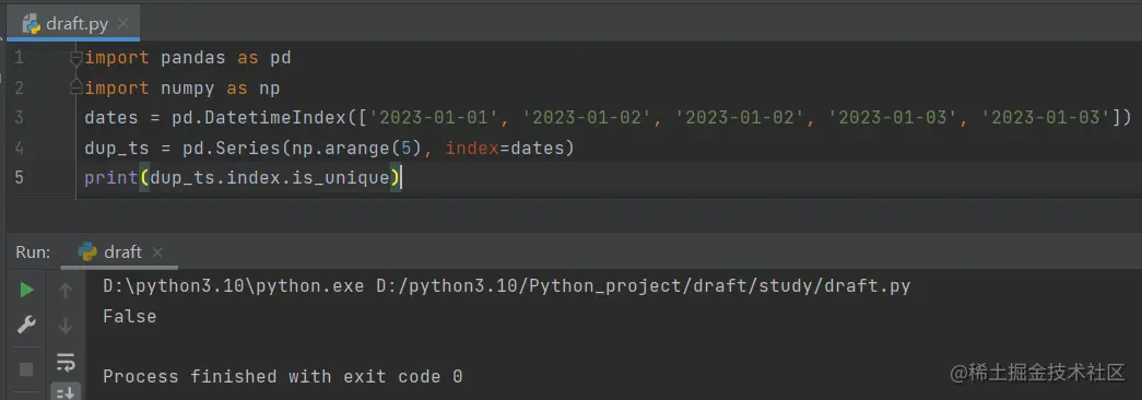 dates = pd.DatetimeIndex(['2023-01-01', '2023-01-02', '2023-01-02', '2023-01-03', '2023-01-03'])