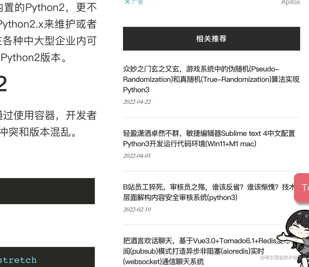 至此,基于聚类的推荐系统构建完毕,每一篇文章只需要通过既有分类模型进行训练,推断分类之后,给用户推送同一分类下的文章即可,截止本文发布,该分类模型已经在本站进行落地实践: