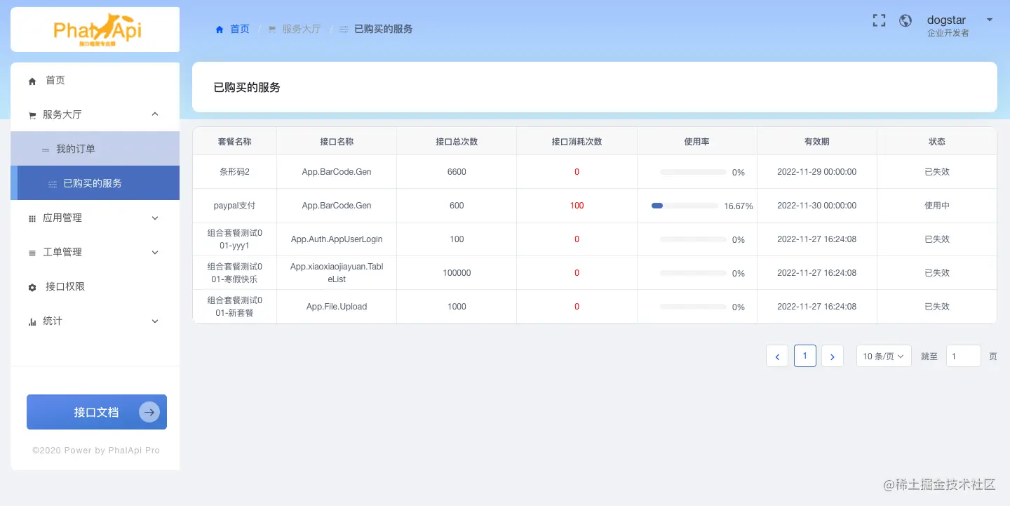 针对API接口商城,即API接口收费的功能,分别提供了完整的功能: