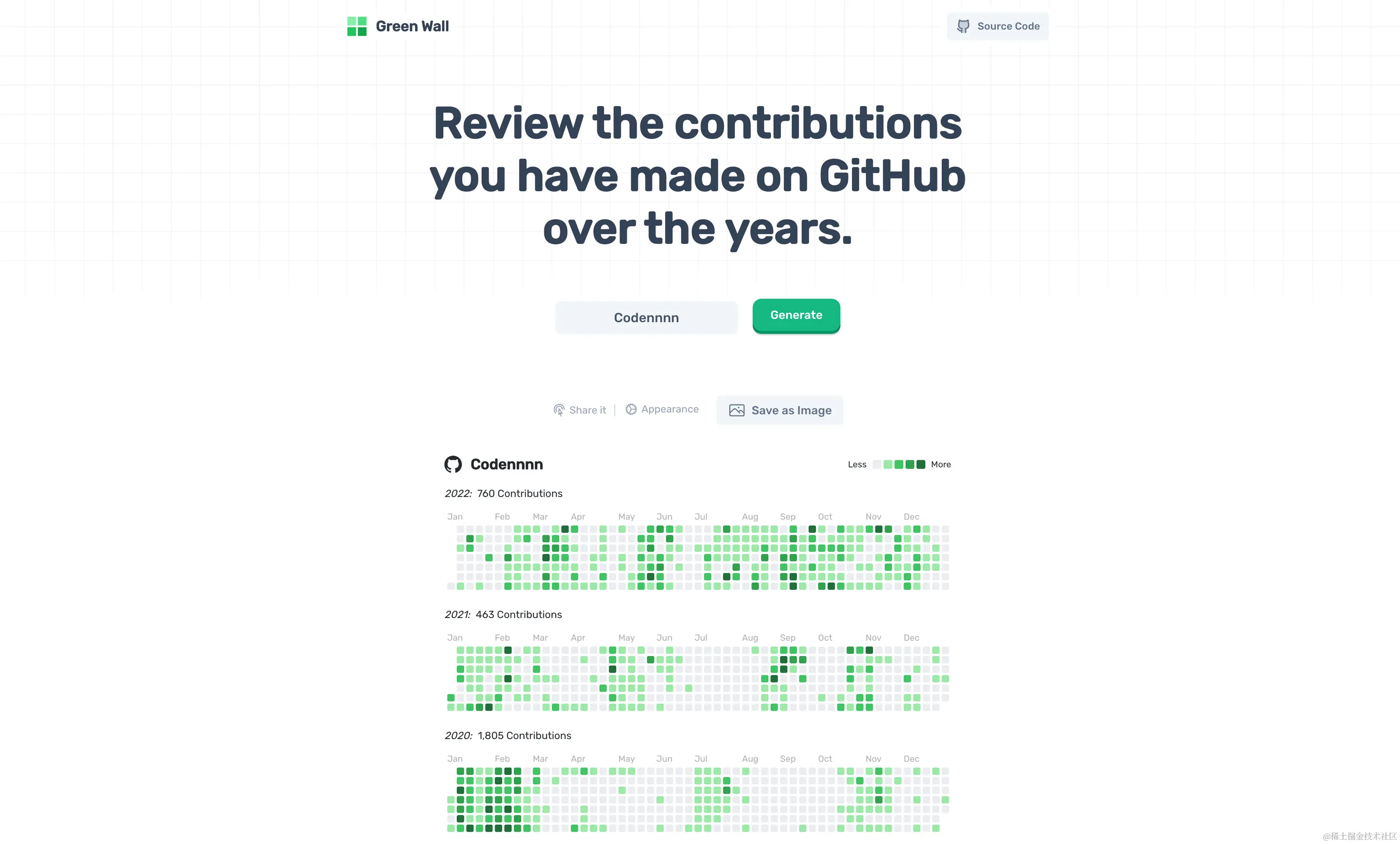 这个项目可以查看你在 GitHub 上所有时间的贡献,很好看。开源的。