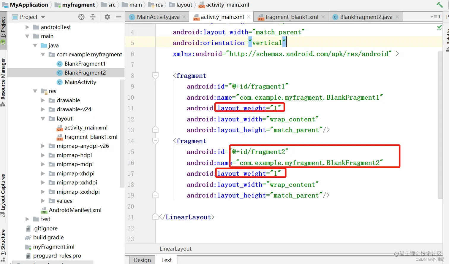 2 activity_main.xml里再添加多个标签,设置权重layout_weight