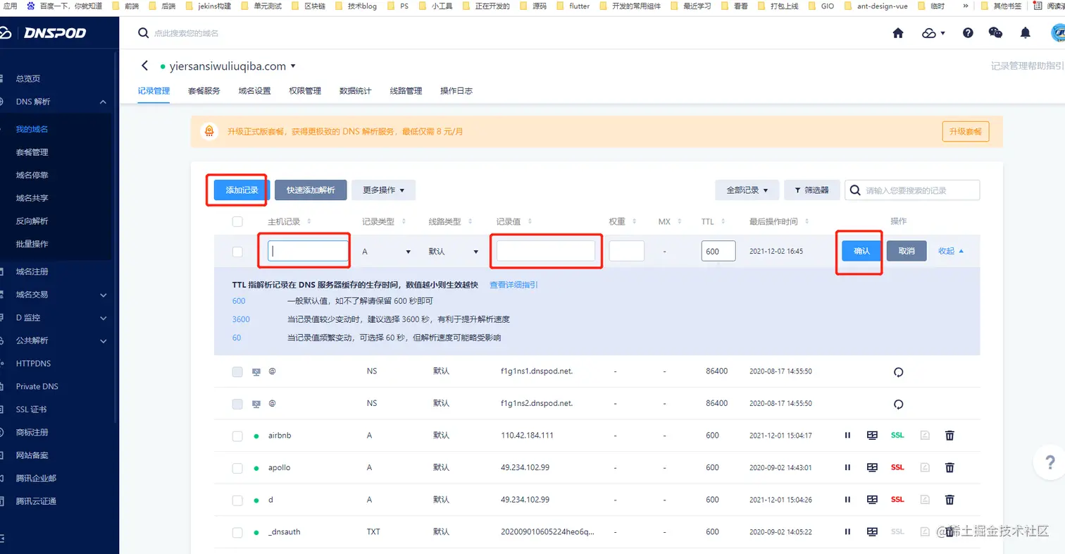 【主机记录】是二级域名,【记录值】是公网IP,点击确定后,ip解析到这个域名,即可使用域名访问生产环境地址