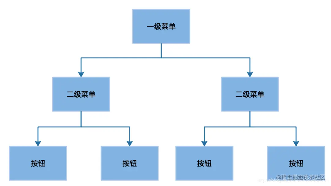 按照这个架构,按钮的父级是二级菜单,二级菜单的父级是一级菜单,这样用户申请权限的时候非常清晰的看到自己需要哪些权限。
