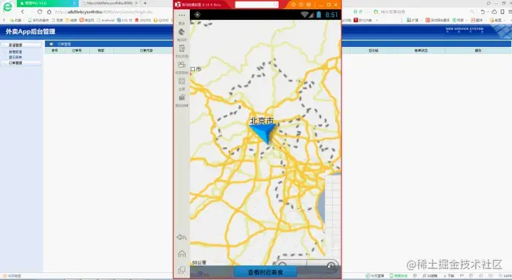 点击登陆页右下角的登陆按钮,即来到了外卖App系统的首页界面。如下图所示: