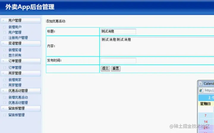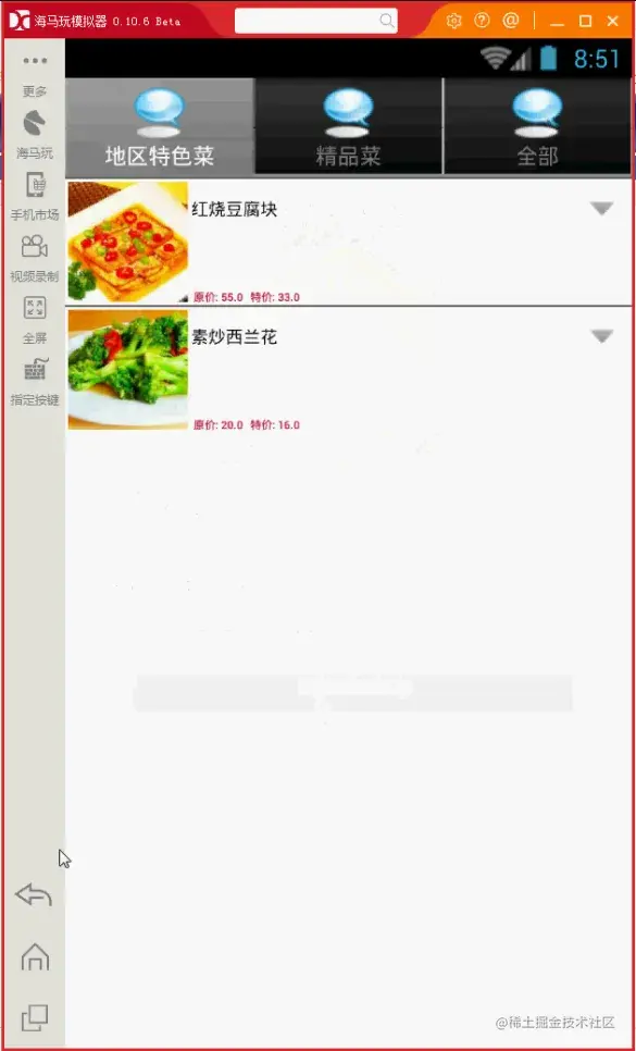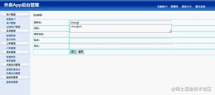 登陆后,即来到了外卖App系统菜品信息的显示界面。如下图所示: