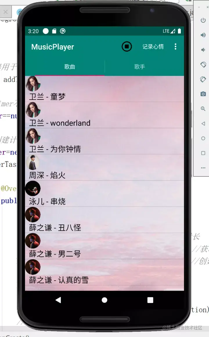 播放:点击列表中的歌曲进行音乐播放