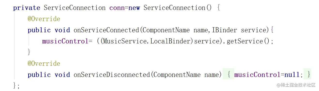 Activity,Activity中需注册广播接收器,完成Service-→Activity 的通信。这种方式适合Activity与 Service交互不太频繁的情况。 - 音乐Activity与后台服务(Service)通信