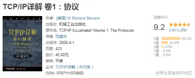 堪称 TCP/IP 领域的圣经。作者 W. Richard Stevens,他从使用者(程序员)的角度,以 tcpdump 为工具,对 TCP 协议抽丝剥茧娓娓道来,让人叹服。恐怕 TCP 协议的设计者也难以讲解得如此出色,至少不会像他这么耐心细致地画几百幅收发 package 的时序图。