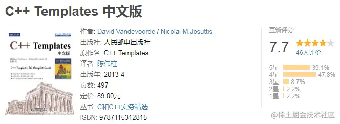 《C++ Templates中文版》,深入了解现代 c++ 模板的实用书籍。本书不仅是对 C++ 模板的权威解释,而且本书还深入地介绍了其他一般的 C++ 思想。