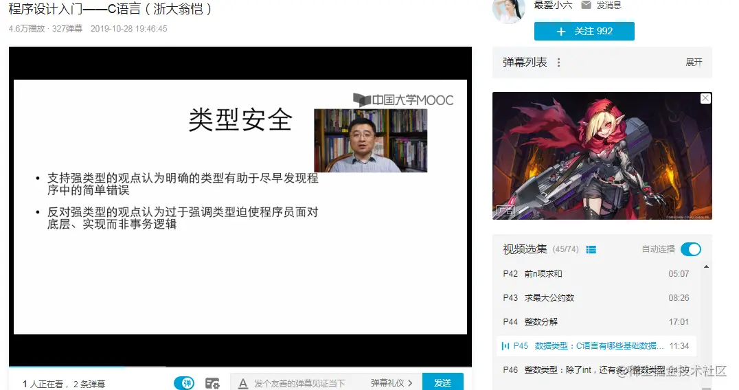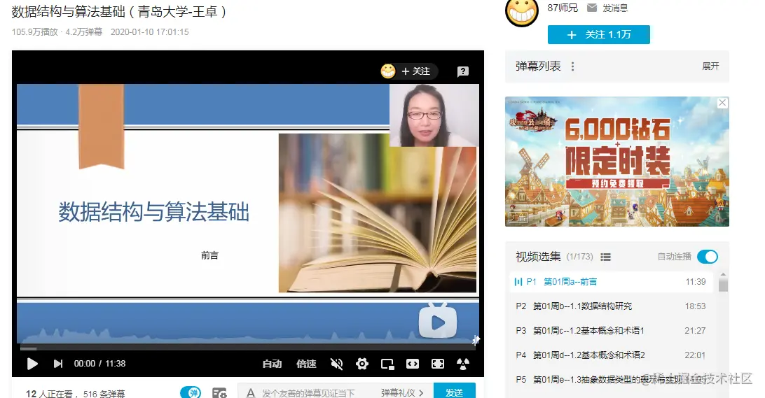课程是由陈越与何钦铭共同录制,b站与慕课网都有,慕课网比较清晰一些