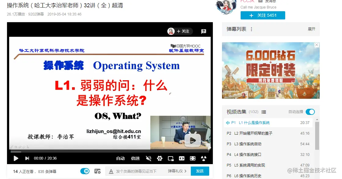 - 操作系统(哈工大李治军老师)32讲(全)超清