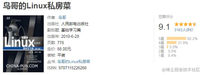 《鸟哥的Linux私房菜》,也是 Linux 入门书籍。是中国人写的,是一个中国人真正了解了这个系统,然后按照中国人的思维习惯写出来的书,所以容易理解。