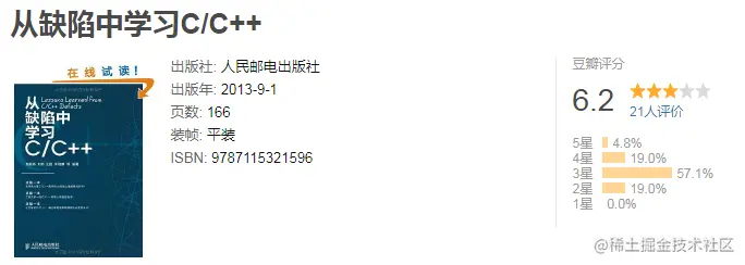 《从缺陷中学习C/C++》从本质上来说,这就是一个 C/C++ 的错题集。全书中包括 63 个问题引发的错误,即书名中的缺陷。也是避坑指南。