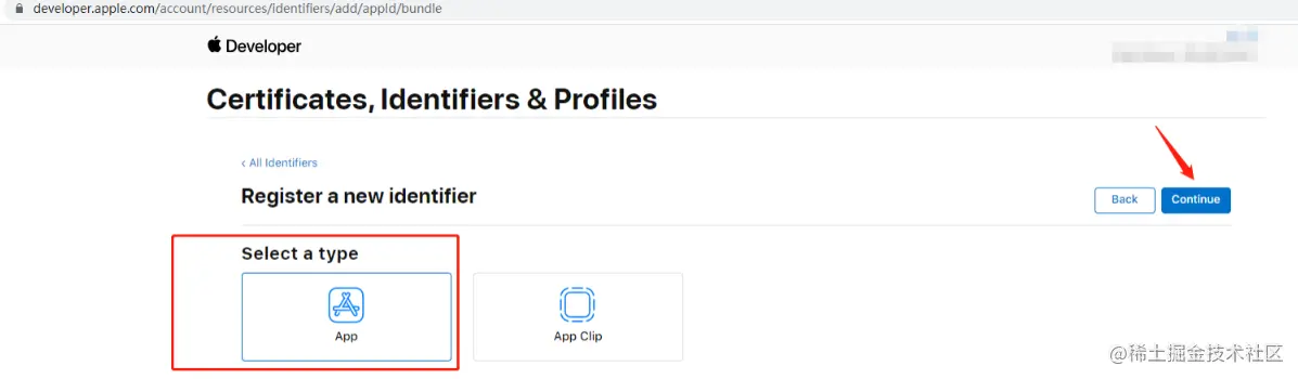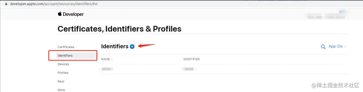 - 申请ios的app ID(app的唯一ID) 2.1选择标识符并单击要创建的编号。