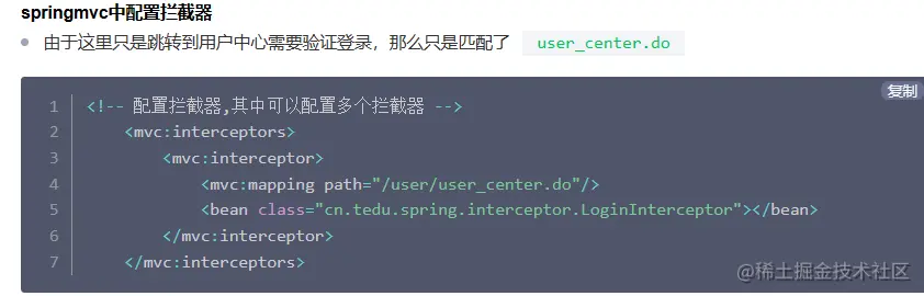 - 开发好拦截器,那么需要在springmvc的配置文件中配置
