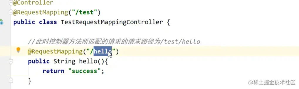 - 模块名+Controller 类其中方法名加 @RequestMapping(“/”)标签就是作为请求映射的标签,其中(“/”): 表示的是绝对路径为http://localhost:8080/SpringMVC/ 上下文的这个请求 返回值return作用就是跳转至需要跳转的页面,内容:“逻辑视图名称”
