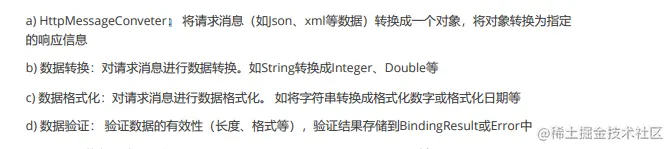 提取Request中的模型数据,填充Handler入参,开始执行Handler(Controller)方法,处理请求。 在填充Handler的入参过程中,根据你的配置,Spring将帮你做一些额外的工作: -