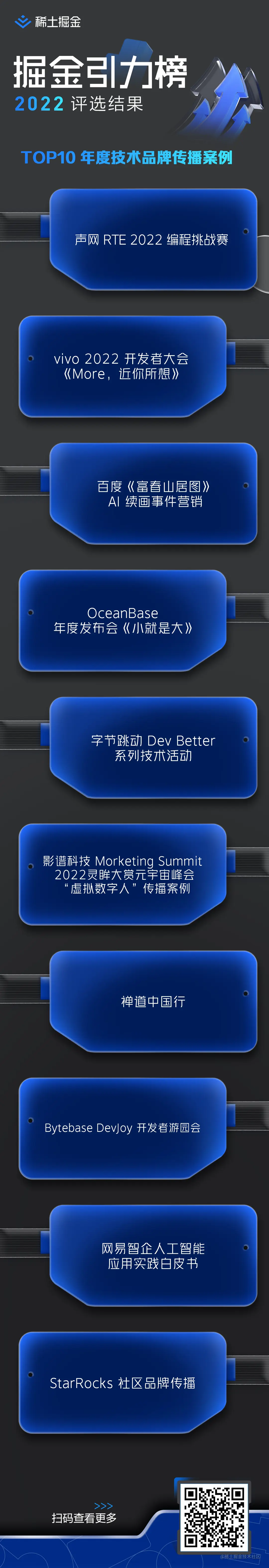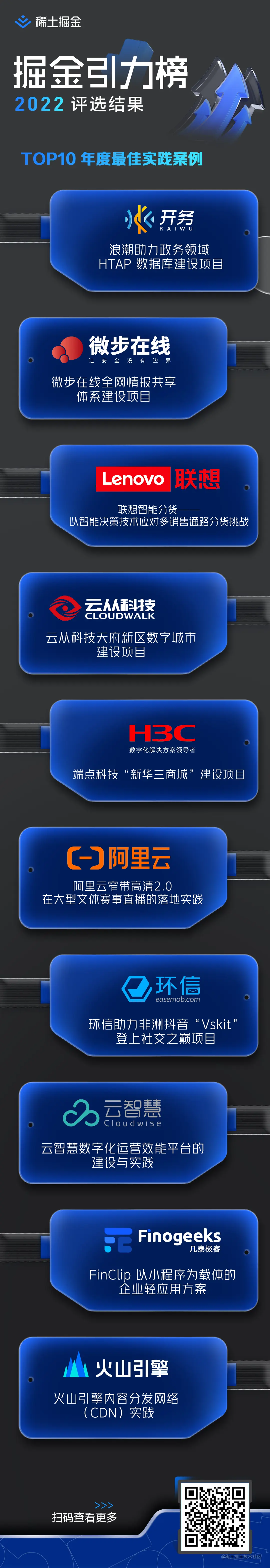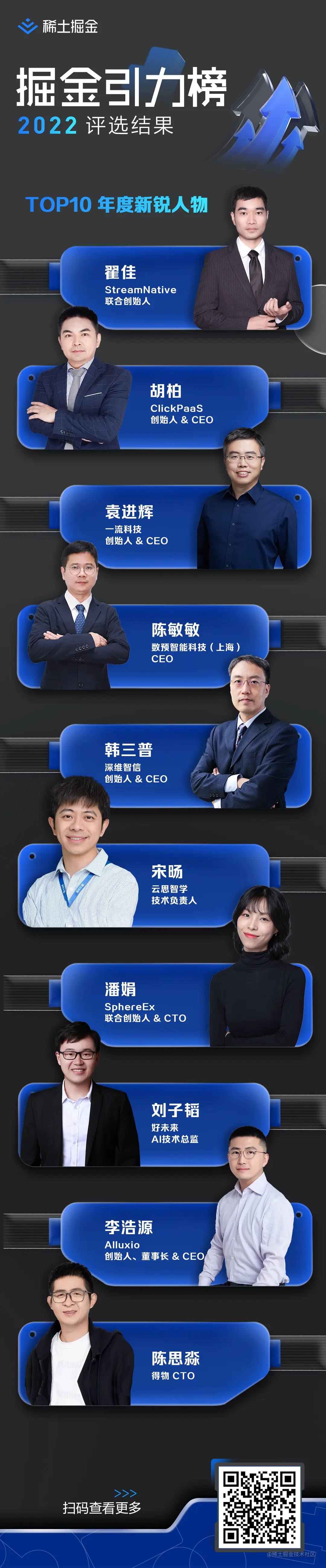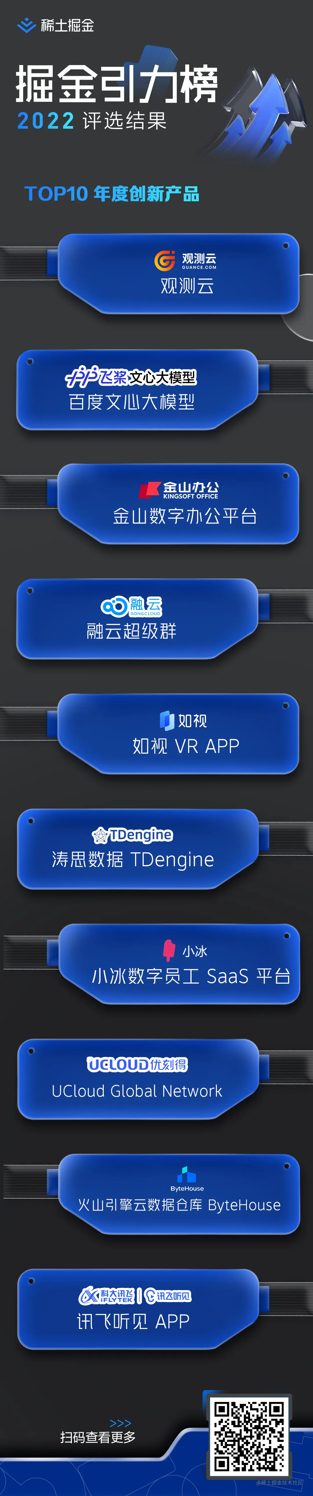 在此背景下,稀土掘金技术社区首次打造「2022 稀土掘金引力榜」,聚焦数字化转型新时代、新机遇,秉持技术初心,面向个人、企业/机构挖掘当下最具影响力、创新力、最具潜质的个人、企业、产品、案例,帮助更多关心数字化转型的企业与个人拨云见雾,洞悉未来,共同解析数字化新时代的机遇和挑战。