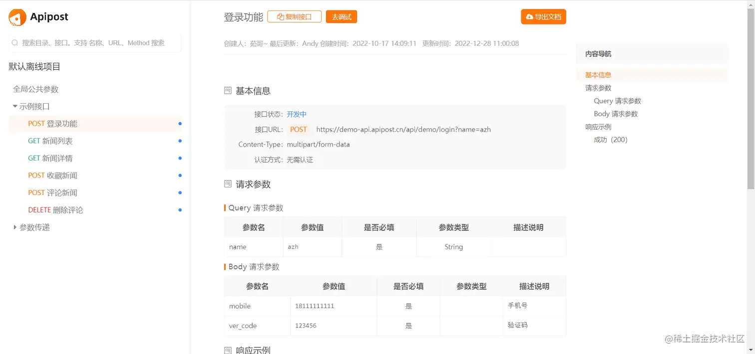 未登录状态下,以及内网环境下,都可以正常进行大部分操作。离线调试接口都是最基本的了,而且还能分享文档,个人感觉这点还是很不错的。