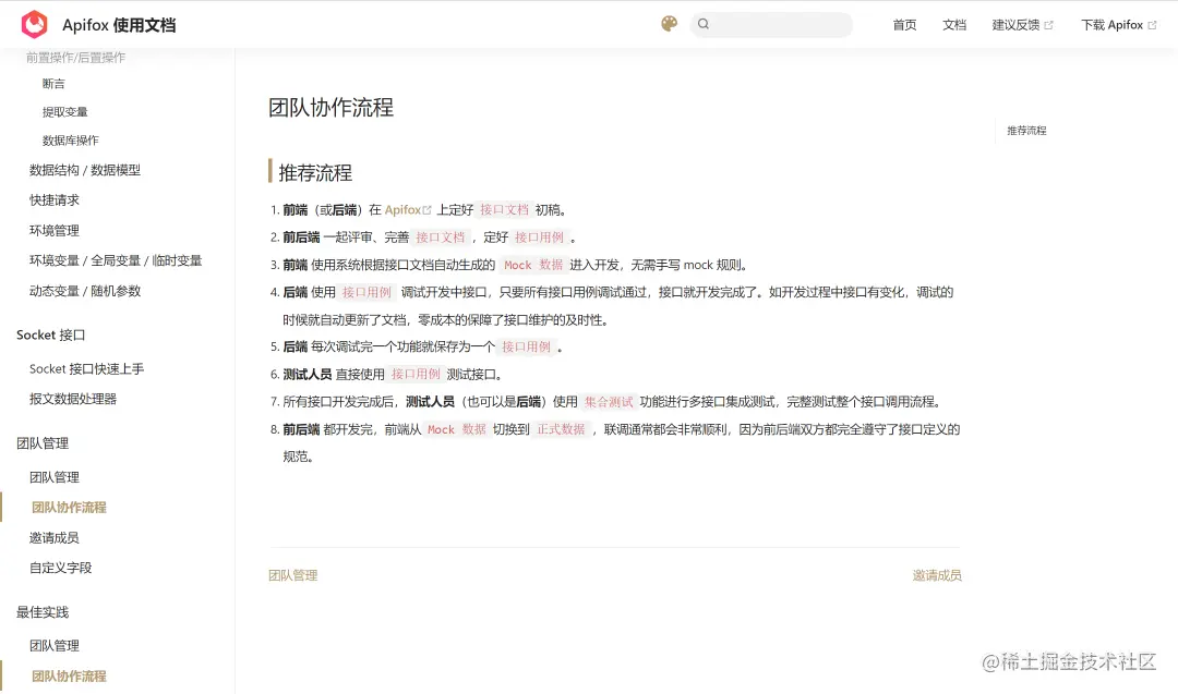 没有明显感觉到协作功能的体现,也不确定是不是自己没有找到(毕竟他们产品设计的总让人找不到地方),于是我就去他们官网查了一下,发现还是有一个协作板块的说明的,但看起来似乎价值不大,各个角色还是没有把协作的优势发挥出来,还是那句话,希望Apifox尽快完善一下自己的功能吧,目前来看差的还是有点多。