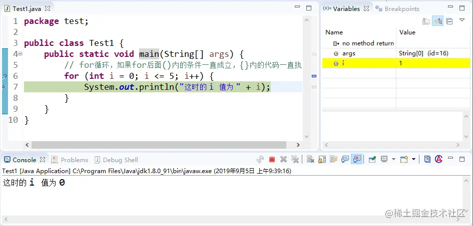 在上述的调试过程中,查看程序中变量值的变化,可以更好地理解程序的执行流程,这种设置断点的调试方式是初学者必须掌握的。