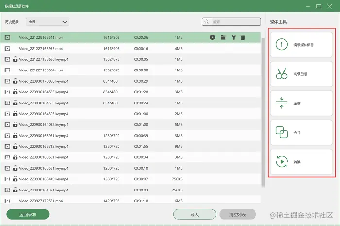 备注:如果有后期剪辑的需求,可以使用【历史记录】上的合并、压缩、高级剪辑、转换等媒体工具。